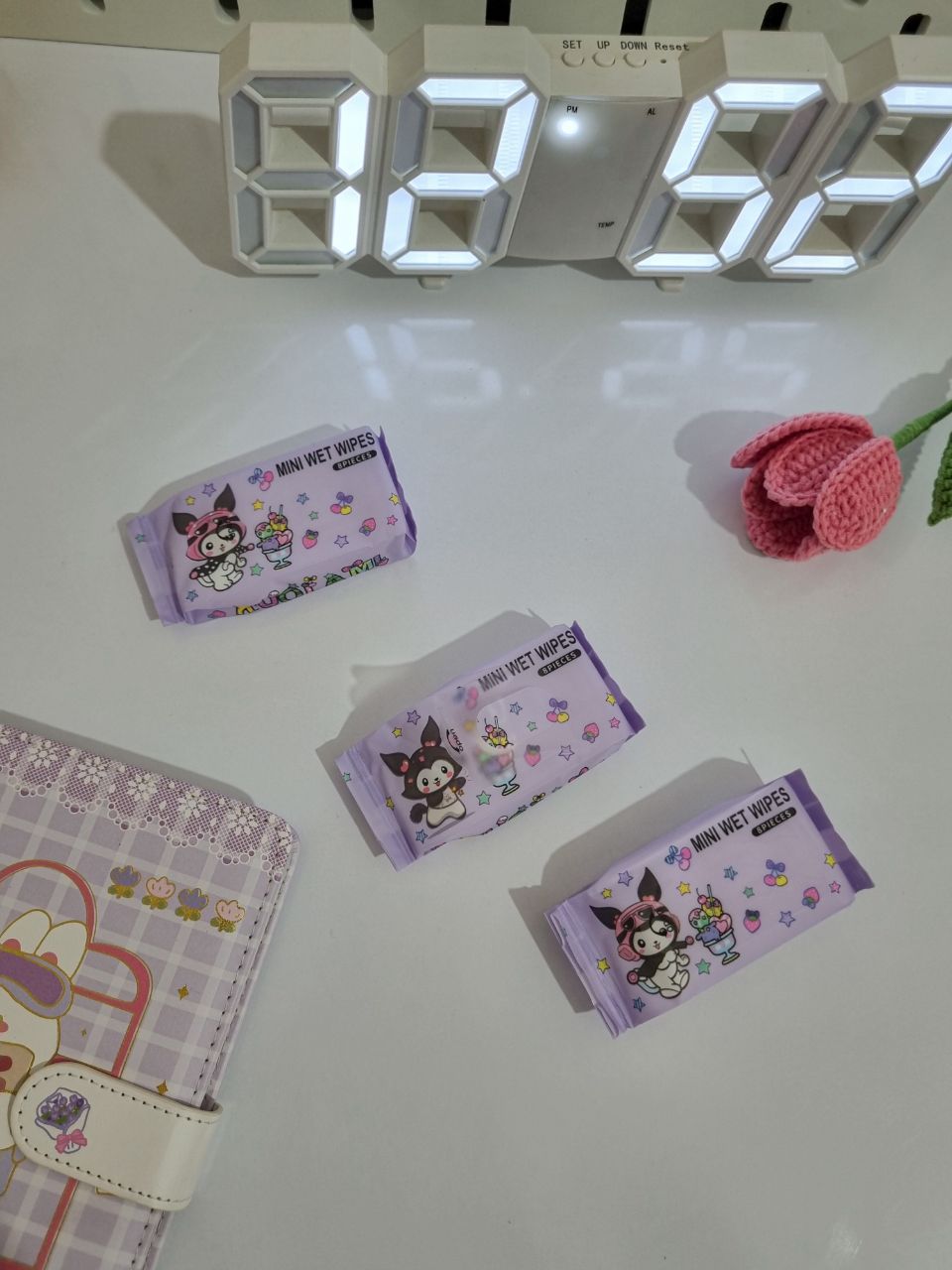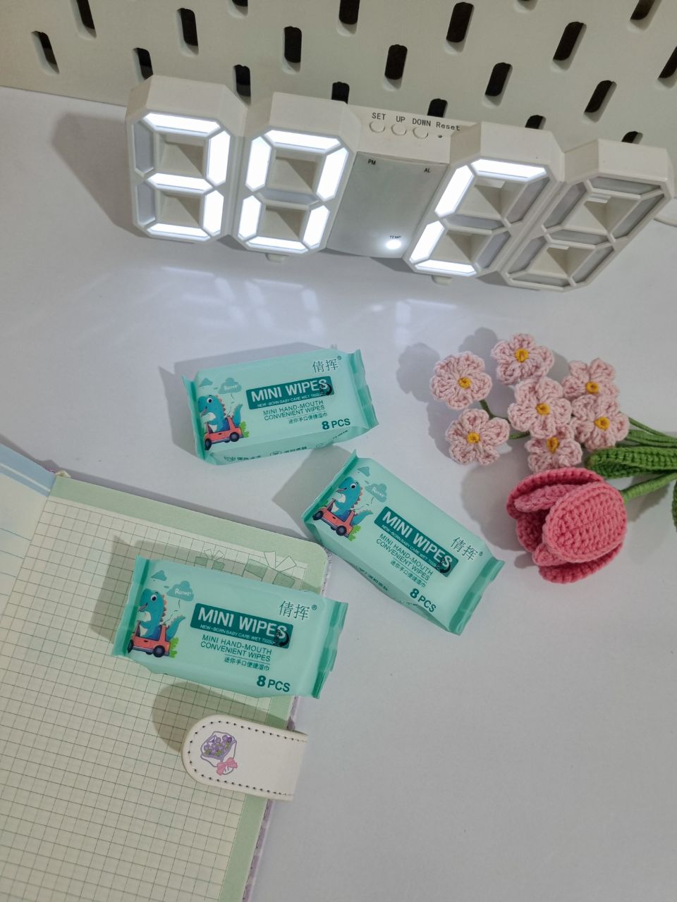 دستمال مرطوب جیبی تعداد در بسته 8عدد دستمال کامل خیسه و سایز مناسبی داره❤️این ریزه میزه ها برای توی کیف عالیه جای کمی میگیره و کارتو راه میندازه قیمت: 17
